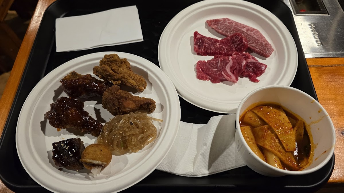 Woodo stands out for its high-quality ingredients and wide range of BBQ options. The marinated beef ribs, known as "갈비살" short rib, are particularly popular, offering a perfect blend of tenderness and savory sweetness. Other menu highlights include sweet chili fried chicken, assorted tempura, and unagi nigiri, ensuring that there’s something for everyone.